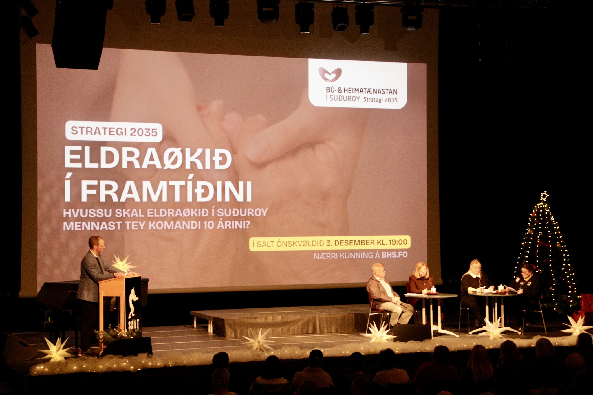 Sera góð íkøst komu frá pallborðinum og úr salinum. Rúni Rasmussen er verkætlanarleiðari fyri hetta spennandi strategiarbeiðið, og saman við góðum og dugnaligum starvsfólkum í Bú- og Heimatænastuni í Suðuroy fer vónadi ein góð og framskygt ætlan at spyrjast burturúr. Rúni hevði framløgu um arbeiðið við framtíðarætlan fyri eldraøkið í Suðuroy.